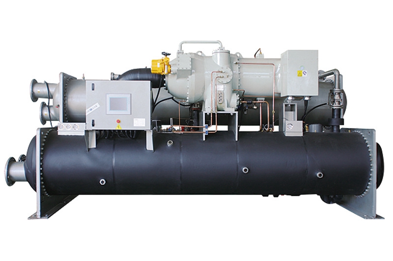 離心式壓縮機(jī):離心式冷水機(jī)組采用離心式壓縮機(jī)作為核心組件。該壓縮機(jī)通過(guò)高速旋轉(zhuǎn)的離心力將制冷劑氣體壓縮,提高其壓力和溫度,然后將高溫高壓氣體排入冷凝器。